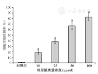 将对数生长期HT-29细胞接种于96孔板中,每孔1×105个。空白对照为不加任何试剂的空孔;对照组不进行任何处理;检测组中,CGA处理方法同前,处理48 h后,每孔加入20 μl质量浓度为5 g/L的噻唑蓝(thiazolyl blue tetrazolium bromide,MTT)试剂,置于37℃、5%CO2的细胞培养箱中孵育4 h后吸出,加入150 μl二甲基亚砜(dimethyl sulfoxide,DMSO)试剂,充分震荡溶解结晶后,用多功能酶标仪测定在450 nm的吸光度(A)。细胞增殖抑制率的计算公式为