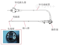 医用内窥镜是具有观察目的的医学仪器,是一种可深入人体自然腔道或通过外科手术打开的孔道进行检查、诊断或治疗的医用光学装置。医用内窥镜分为软性镜(胃镜、十二指肠镜、结肠镜、小肠镜、超声镜等)和硬性镜(电子腹腔镜、前列腺电切镜、宫腔电切镜、硬性输尿管镜、硬性膀胱镜、经皮肾镜等)。本研究以医用内窥镜的各组成部分为单位进行研究,这些部分分别为导光插头部、导光束蛇管、操作部、插入部、弯曲部和先端部(图1)。各部分分别由不同的功能单元组成,这些功能单元对内窥镜的正常使用具有不同的作用。某一功能单元发生故障可能会直接影响医疗任务的完成,甚至导致重大经济损失。因此,通过FMECA获得医用内窥镜的重要功能单元是十分必要的,同时也为临床工程师从理论和实践两个方面提供相关重要功能单元的识别和维护维修策略,为提高医院医疗设备的保养维修水平提供依据[4,5,6,7,8]。