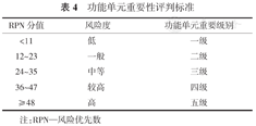(9)确定重要功能单元:根据RPN分值的大小,将故障风险程度分为5个等级,相对应的功能单元重要级别也分为5个等级,选择重要级别在四级及以上的功能单元作为重要功能单元(表4)。