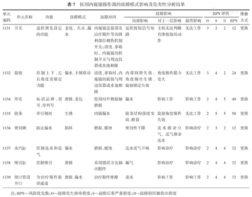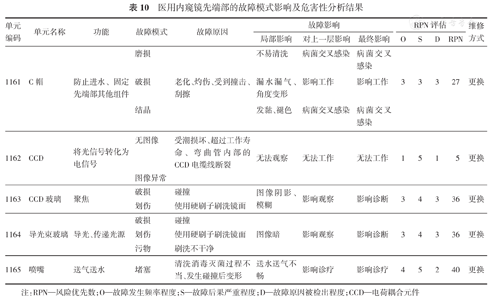 医用内窥镜先端部的故障模式影响及危害性分析结果