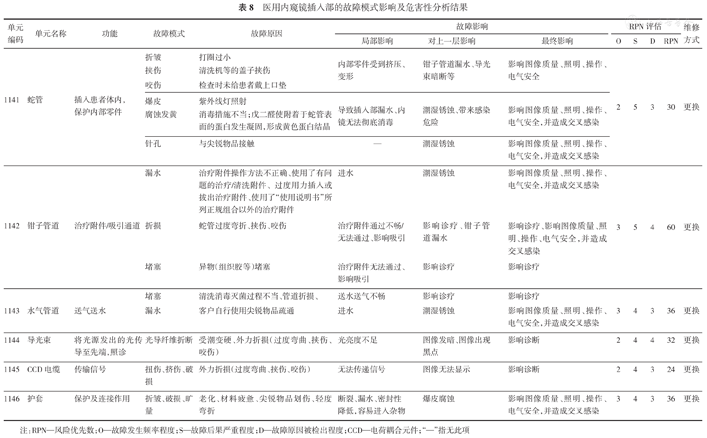 医用内窥镜插入部的故障模式影响及危害性分析结果