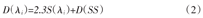 式中:I0为初始光强,I为被测光强,U0和U分别是初始转换电压和转换电压信号,分别与I0和I对应。通过使用最小二乘拟合法,以光密度为纵坐标,以光源与传感器之间的距离为横坐标,可以计算波长λi的光散射系数(D(λi))与斜率(S(λi))之间的关系[9]