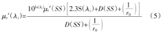 式中:εHbO2(λi)和εHb(λi)分别为HbO2和Hb在波长λi处的消光系数,C[HbO2]为氧合血红蛋白含量,C[Hb]为脱氧血红蛋白含量。波长λi处的光衰减因子(μt′(λi))可由公式(5)计算得出[9]