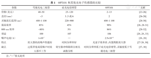 | 参数 | 雪崩光电二极管 | 硅光电倍增管 | OPT101 | 文献 |