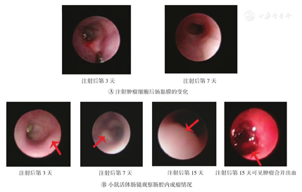 (四)小鼠活体肠镜检查。肠镜检查BALB/c-nu小鼠(方法同前)。注射癌细胞前,肠镜下观察肠腔情况,排除炎症及肿瘤。