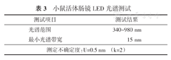 (二)LED光谱测试。小鼠活体肠镜LED光谱测试结果见表3。
