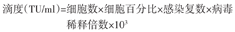 使用pSPAX2、pMD2G和pHBLV-Fluc-RFP 3种质粒载体共转染293T细胞,72 h后收集病毒上清,并超速离心浓缩病毒上清。采用滴度检测法测定慢病毒超离液的滴度,做3倍梯度稀释共6个稀释度感染293T细胞,于倒置显微镜下观察细胞的生长情况,以细胞百分比在10%~30%培养孔的病毒稀释倍数计算病毒滴度。其中,细胞百分比为10%培养孔的病毒稀释倍数为30倍(图3),应用公式计算可得本研究包装病毒的最终滴度达1×108 TU/ml,表明该293T细胞产生的病毒上清可高效感染肺癌细胞。