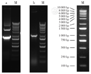 a—Fluc克隆片段PCR产物;b—克隆慢病毒载体上Fluc的PCR产物;M—DNA Marker;Fluc—萤火虫荧光素酶;RFP—红色荧光蛋白