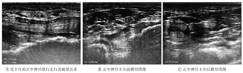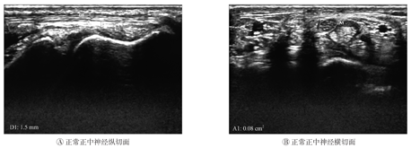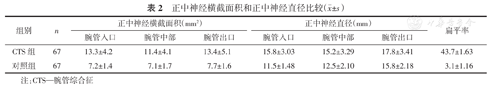 正中神经横截面积和正中神经直径比较(