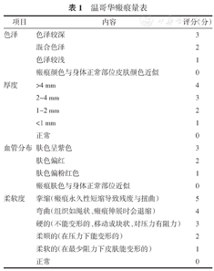 通过温哥华瘢痕量表(vancouver scar scale, VSS)评价患者治疗前与治疗后6个月的瘢痕形态,包括瘢痕的色泽、厚度、血管分布、柔软度的改变。(表1)。