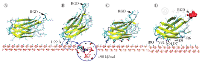 FN-Ⅲ10—纤维粘连蛋白III型域模块10;RGD—精氨酸-甘氨酸-天冬氨酸;1 Å=10-10 m