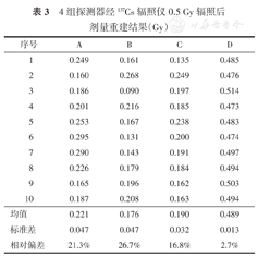 4组探测器经137Cs辐照仪0.5 Gy辐照后剂量重建结果(Gy)