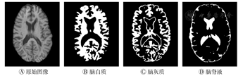 通过BET(brain extraction tool)算法去除原始磁共振图像的非脑组织部分,使用BFC(best-fit with coalescing)算法去除强度不均匀性,使用差分搜索算法对图像进行最大类间方差寻优,找出最优阈值,从而对磁共振图像进行多阈值分割。使用BrainWeb提供的仿真磁共振脑部图像数据对方法进行验证。