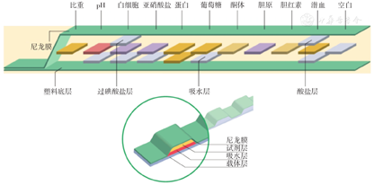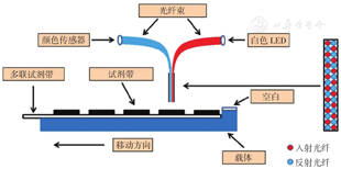 无论采用上述哪种分析技术,尿液干化学分析均用到多联试剂带。经尿液浸润后的多联试剂带颜色发生改变,可采用不同方法进行定性或半定量的颜色识别,从而得出被测项目的浓度。