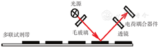在该分析技术中,光源由能发出3种特定频率的发光二极管(light emitting diode, LED)产生,3种LED依次相间地排成一列,以形成线状光,透过毛玻璃(磨砂玻璃)使光线均匀照射在试剂块上,反射光再经透镜聚焦成像在光学元件CCD上(图3)。测出反射光的光亮值,即可实现对尿液成分含量的检测。经尿液浸润的试剂带膜块,均可被视为只有1种颜色的图像,然后采用CCD图像识别法进行识别[12,13,14,15,16,17]。