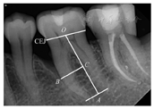 CEJ—釉牙骨质界;B点—骨缺损底;O点—釉牙骨质界中点;A点—根尖或根尖中点;C点—B向线的投影点