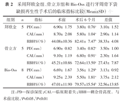 比较拜欧金、骨立方和Bio-Oss 3种骨移植材料联合引导组织再生术(GTR)治疗牙周骨下袋缺损的临床效果。