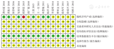 由两名研究员独立进行文献筛选和资料提取,将纳入的文献进行质量评价后并交叉核对。纳入文献的质量评价可参考Cochrane系统评价员手册5.1.0版关于RCT的质量评价标准[6]。若意见不同,可讨论解决或征求第三者判定得出结论。