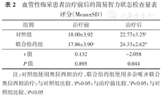 | 联合给药组 | 30 | 19 | 11 | 72.0±3.6 | 15.20±3.88 |