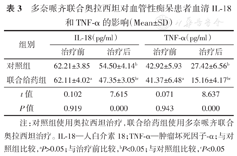 治疗前,两组患者的血清炎症因子(IL-18和TNF-α)水平差异均无统计学意义(均P>0.05)。治疗后,两组患者的血清IL-18和TNF-α水平均低于治疗前(均P<0.05),联合给药组血清IL-18和TNF-α水平均低于对照组(均P<0.05)。(表3)