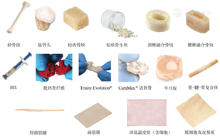 | Cortical/Cancellous Granules | 由捐献骨加工成粉、纤维、块等形状,按解剖形态可分为皮质骨、松质骨、混合骨 | 临床骨缺损的填充、修复 | LifeNet、Wright等 | ||