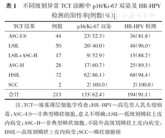 | TCT结果 | 例数 | p16/Ki-67双染 | HR-HPV检测 |