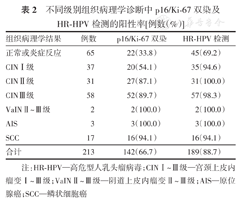 | 组织病理学结果 | 例数 | p16/Ki-67双染 | HR-HPV检测 |