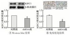 采用SPSS22.0软件进行统计学分析。复合正态分布的样本以均数±标准差(Mean±SD)表示。两组间比较采用独立样本t检验,临床病理特征与KIFC1表达的相关性采用χ2分析。以P<0.05为差异有统计学意义。