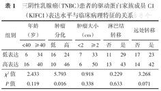 三阴性乳腺癌(TNBC)患者的驱动蛋白家族成员C1(KIFC1)表达水平与临床病理特征的关系