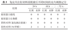 兔皮内注射材料浸提液后不同时间的皮内刺激记分