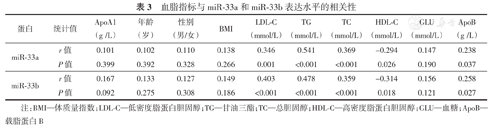 miR-33在高血脂人群中表达量升高,且与LDL-C、TG、TC、ApoB有一定的相关性。