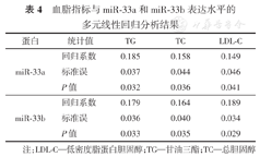 血脂指标与miR-33a和miR-33b表达水平的多元线性回归分析结果