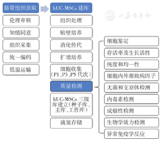 将通过筛选入组的247份人脐带组织于药品生产质量管理规范(GMP)实验室进行分离、培养、扩增、传代、冻存等一系列操作,并按照质量管理控制相关规范要求,对hUC-MSCs进行生物学特性、安全性与稳定性等质量检测,以获得质量可控的临床级细胞株。