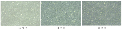 采用显微镜观察不同代次细胞的状态并拍照。