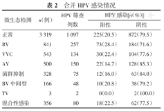 | 微生态检测 | n(例) | HPV筛查例数 | HPV感染[n(%)] | |