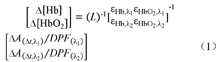 总体血红蛋白(total hemoglobin,HbT)的相对浓度变化如式(2)所示。