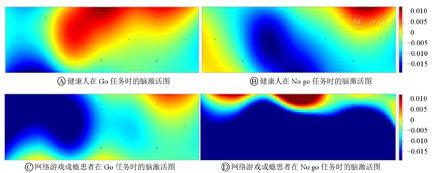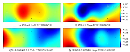 如图4所示,在执行停止信号任务时,健康人在执行No go任务时前额叶在3、6、9通道出现强激活,成瘾患者在7通道出现边缘激活,健康人在执行No go任务时的前额叶激活程度比成瘾患者更强。