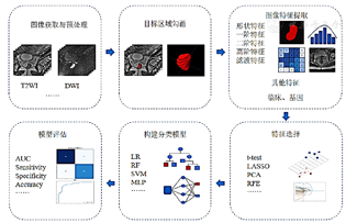 基于传统影像组学的研究普遍存在异质性,各环节的差异都会影响特征的重复性,但这恰恰是进一步临床应用所必须解决的。已有研究表明,在图像获取时,不同中心的硬件和采集参数是图像差异的主要来源,且ADC的变化大于T2WI;在肿瘤勾画时,不同经验专家的勾画结果所提取特征的重复性均较好,但勾画最小最清晰的实体边界所提取的特征鲁棒性更好[11,30,31,32]。就特征而言,一阶特征、形状特征、灰度共生矩阵(gray level co-occurence matrix,GLCM)特征的重复性更好,而灰度游程矩阵(gray level run length matrix,GLRLM)、灰度大小区域矩阵(gray level size zone matrix,GLSZM)和邻域灰度差矩阵(neigbouring gray tone difference matrix,NGTDM)特征易受图像质量、提取软件的影响,重复性较差,上述TN分期模型所选取的特征类别分布也符合该观点。多中心数据的差异依赖相关机构制定统一的标准化成像协议,而为了实现可重复的特征提取,图像生物标志物标准化倡议(image biomarker standardization initiative,IBSI)已给出了标准的特征定义和计算方式。现有的研究大多基于Python和Matlab展开,二者分别提供PyRadiomics和Radiomics包用于特征提取,且均遵循IBSI规范,在保持用户自定义计算设置一致的情况下,可以有效提高跨平台影像组学特征的可靠性[33]。