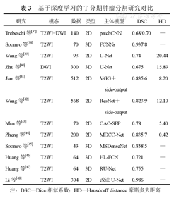 | Soomro等[38] | T2WI | 70 | 3D | FCNNs | 0.937 8 | — |