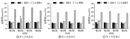| 腹腔胰岛素治疗组 | 6 | 42.16(2.05)ab | 41.09(1.25)ab | 40.26(1.99)ab | 38.46(1.08)ab | 38.57(1.61)ab |