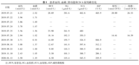 患者血钙、血磷、肾功能和24 h尿钙磷变化