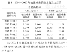 2014—2020年输注唑来膦酸之前及之后的骨转换指标