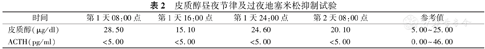 | 08:00点 | 16:00点 | 24:00点 | 尿皮质醇 | 治疗情况 | ||