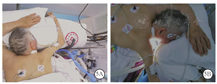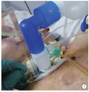 | □与床低位同高的固定的床尾桌:头部放于床尾桌上□床下照明设备:颈部气切导管悬空后便于操作 | □距离穿刺点20 cm处再次固定导管□仪器与病床间的距离,足够导管左右移动 及180°轴向翻身的距离长度□固定仪器与病床的刹车 | |