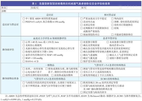 危重型新型冠状病毒肺炎机械通气患者俯卧位安全评估检查表