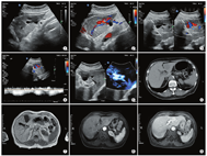 查阅病历,患者无肝硬化、门静脉高压病史,肝脏及脾脏回声正常,肝功能正常,故考虑此患者为肝内型先天性门静脉瘤,先天性门-肝静脉分流。明确此诊断具有重要的临床意义。目前临床上一些小的分流可以长期随访而不需要过度干预,而一些大的分流或者有症状的患者则需要临床干预治疗,通过彩色多普勒超声、MRI、DSA等影像学检查,了解分流形式[4];另外,彩色多普勒超声可以通过计算分流管的体积与总门静脉瘤体积之比测定肝内门-体静脉分流的分流量[5],可指导临床治疗方案,相应选择手术或介入、腹腔穿刺等操作。这就要求在日常工作中要更加细致,通过彩色多普勒超声能清晰显示囊性回声内有无血流信号,最大程度地避免漏诊和误诊,为临床提供更加准确的超声诊断。彩色多普勒超声以其无创、简便、费用低、可重复操作等优点已经成为门静脉瘤的首选影像学检查方法,不仅可以识别血流方向,测定血流速度,同时用于肝门血管分流的检测,可清晰显示分流通道内(五彩镶嵌)的血流信号,明确辨识是否存在门-体静脉分流。