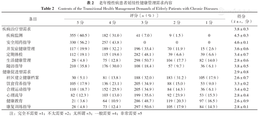 Contents of the Transitional Health Management Demands of Elderly Patients with Chronic Diseases