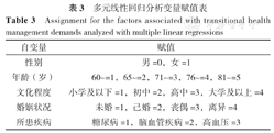Assignment for the factors associated with transitional health management demands analyzed with multiple linear regressions