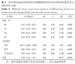 老年慢性病患者疾病治疗型健康管理需求得分影响因素的多元线性回归分析