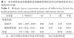 老年慢性病患者健康促进型健康管理需求得分影响因素的多元线性回归分析